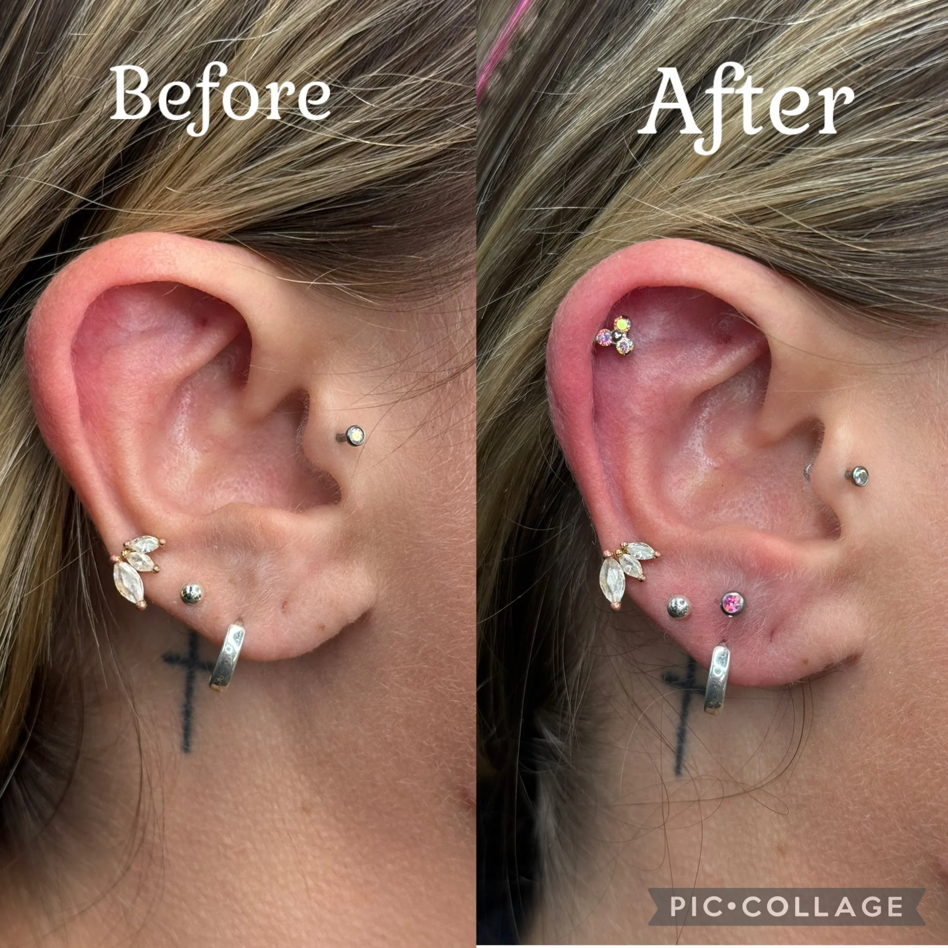 Styling the ear to add lobe stack and flat piercing.